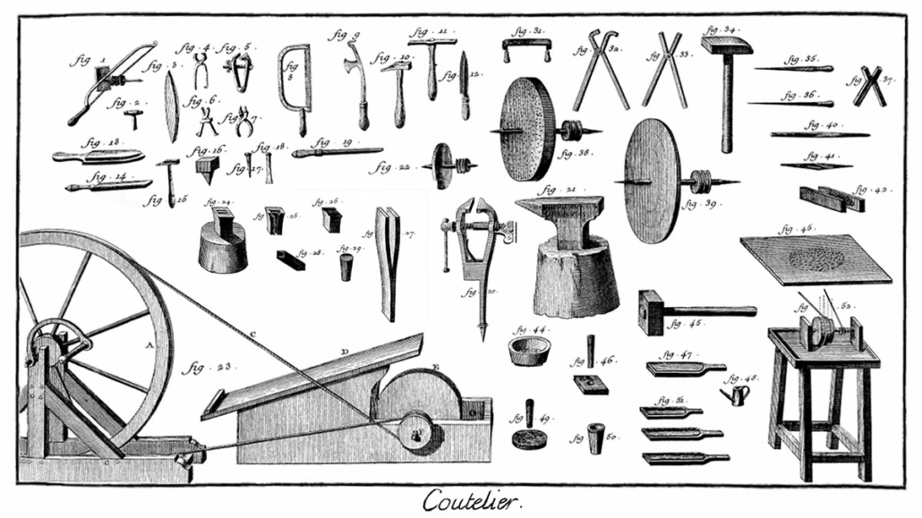 Un autre artisan typique c’est le taillandier. C’est un forgeron qui exploite souvent la force hydraulique des moulins à eaux pour “repasser” la taillanderie. C’est un spécialiste qui confectionne toute les sortes d’outils tranchants pour les bouchers ou coupants comme les serpes pour les agriculteurs et les viticulteurs.